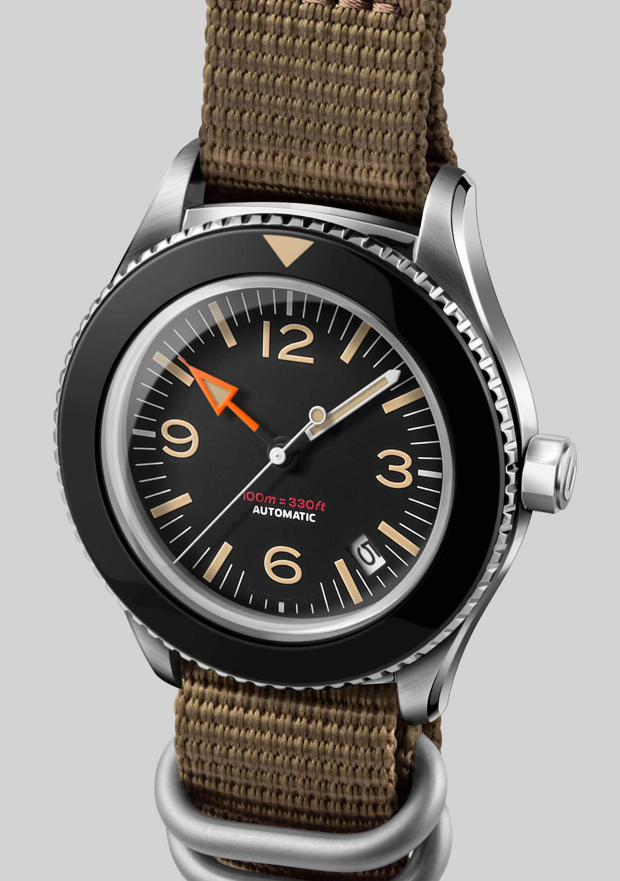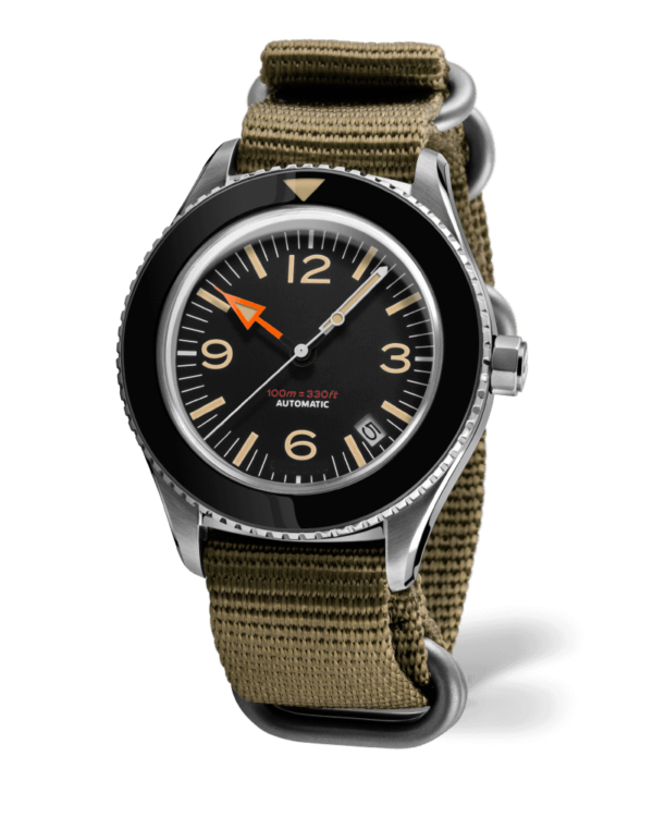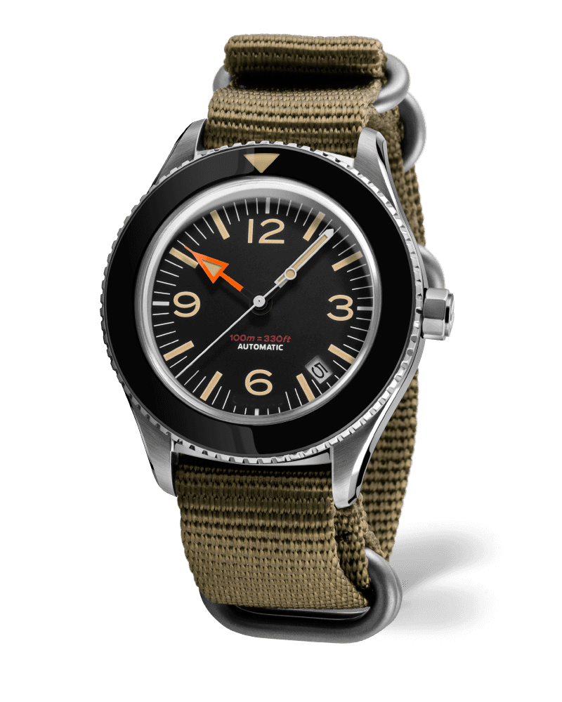 A gutsy, good-looking tool watch that combines high-performance functionality with vintage aesthetics. Featuring an iconic orange hour hand with matching strap, a sterile bezel and ultra-domed plexi crystal, the 40mm Basecamp is designed with the style, comfort and durability for everyday wear. Yes, you may have found the best affordable automatic watch under 500 USD out there!