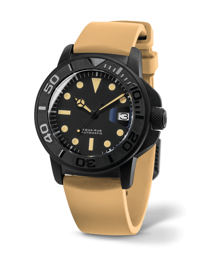 Hit the streets with the Aqua PVD Black, a trendy and hefty diver watch with a touch of vintage-inspired elements. Designed for the bigger wrists, the 43mm case diameter makes this watch a perfect fashion accessory for those who prefer a larger dial and case. Housed within the scratch-resistant sapphire crystal is a Japanese TMI NH35A Automatic Winding Mechanism with a 42-hour power reserve.